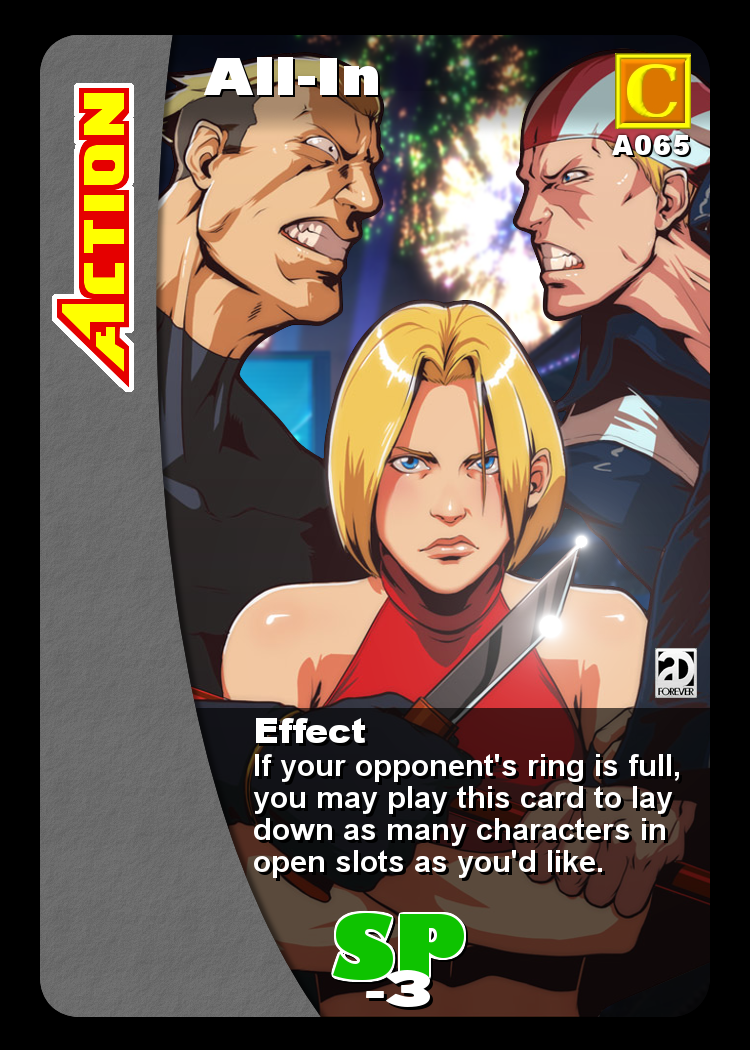 If your opponent's ring is full, you may play this card to lay down as many characters, in open slots, as you'd like.