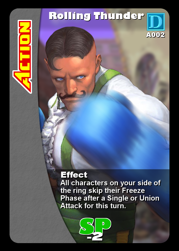 | All characters on your side of the ring skip their Freeze Phase after a Single or Union Attack for this turn. |