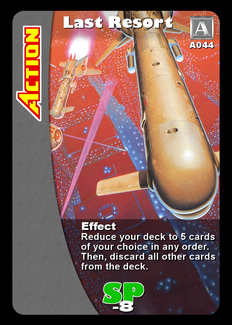 Select 1 Action Card from your deck. Shuffle your deck, then put that card on top. |